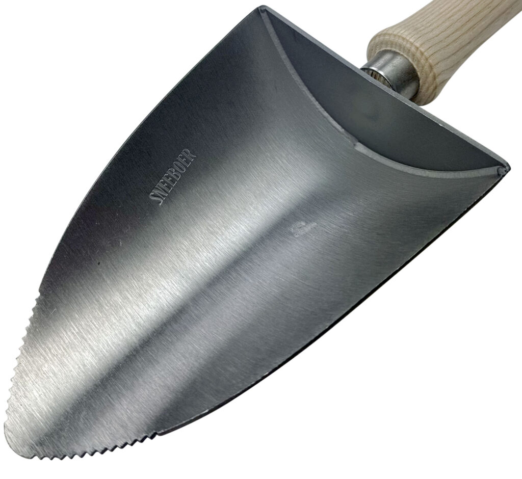 Diese handgefertigte Gartenkelle verfügt über einen gezackten Rand, der das Öffnen von Säcken mit Blumenerde, Kompost oder anderen Materialien mühelos macht. Keine Schere oder Messer mehr nötig – mit einer Bewegung reißen Sie die Plastiktüten auf.