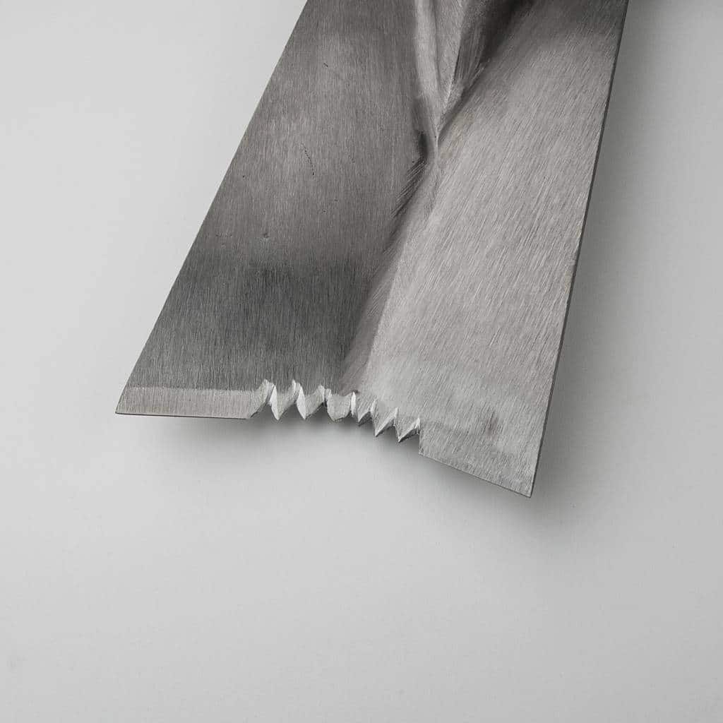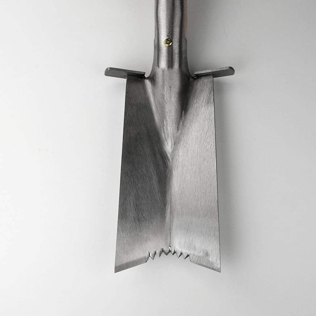 Bei diesem Spaten mit Zacken handelt es sich um eine außergewöhnliche Variante des herkömmlichen Pflanzspatens. Er kann sowohl für den Wurzelschnitt im Garten als auch für die Vorbereitung halb ausgewachsener Pflanzen für das Verpflanzen verwendet werden. Dies macht ihn zu einem unverzichtbaren Werkzeug für die Beseitigung unerwünschter, zurückbleibender Baumstümpfe. Durch die Zacken ergibt sich eine zusätzliche Sägewirkung. Bei größerem unterirdischen Wurzelwerk kann dieses mit dem Spaten durchtrennt werden, was weit weniger Energie erfordert als das herkömmliche Ausgraben und anschließende Durchtrennen der Wurzeln mit einer Säge. Ähnlich wie bei einem Pflanzspaten handelt es sich hierbei um einen robusten V-förmigen Spaten, der speziell für das Umpflanzen von Bäumen und Sträuchern entwickelt wurde. Mit fast chirurgischer Präzision lassen sich so Pflanzen umpflanzen, ohne die umliegenden Gewächse und Wurzelstrukturen zu beschädigen. Das Blatt eines herkömmlichen Spatens ist gekrümmt und somit zum Verpflanzen weniger geeignet, da es von den Wurzeln abrutschen kann. Die V-förmige Einstechkante dieses Spatens sorgt dafür, dass die Wurzeln leichter erfasst und durchtrennt werden können. Im Vergleich zu anderen Spaten handelt es sich bei diesem Pflanzspaten mit Zacken um ein leichtes Gerät.