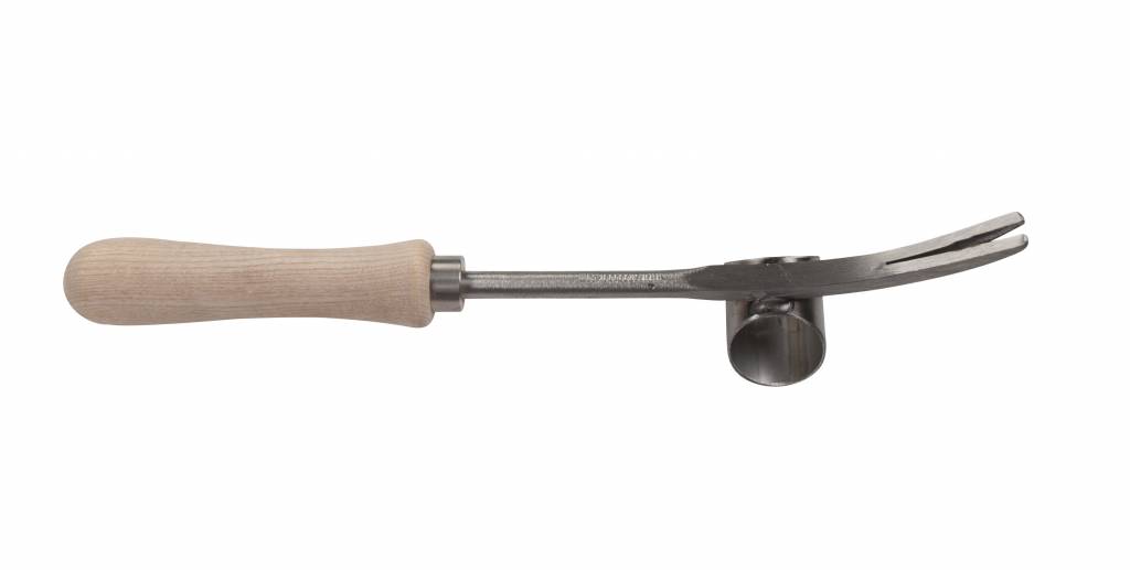 The daisy weeder is modelled after an antique Victorian tool, whose function is as relevant in today’s world as it was in the 19th century. By using the daisy weeder during the wetter periods in the year, the root of these weeds can be removed in full with relative ease by sticking the end of the weeder in the soil with the weed in between and the using the tube as a point for leverage. This removes strain from the wrists and the weed is removed with the entire root. The daisy weeder can be delivered with a normal ash handle or a specially shaped cherry wood handle.