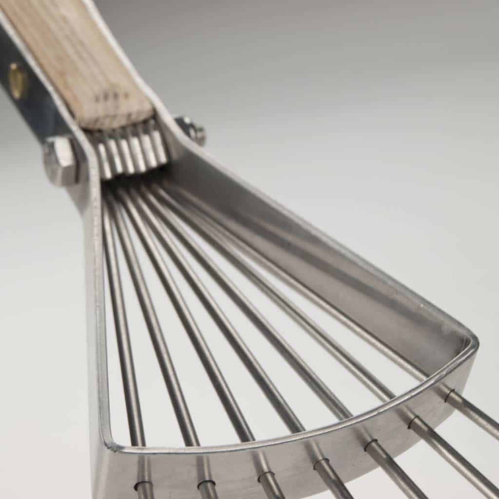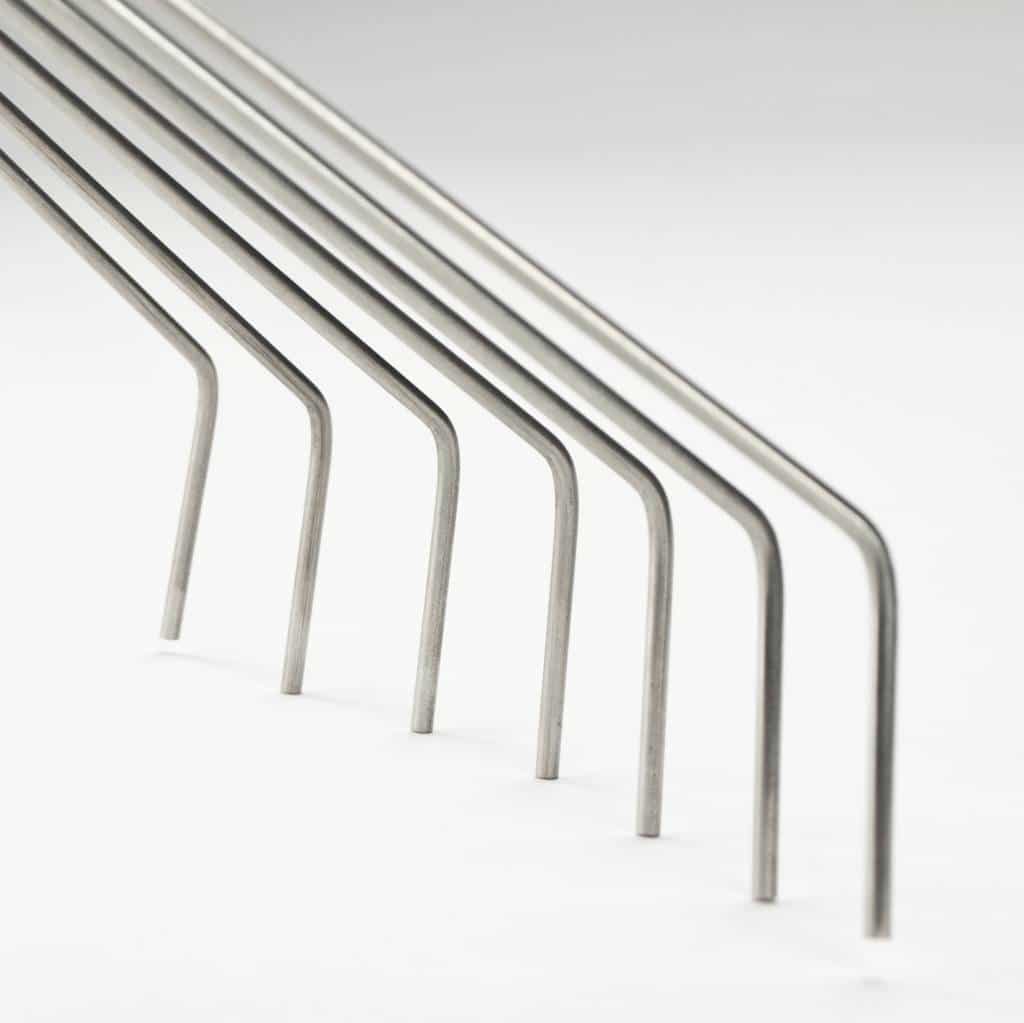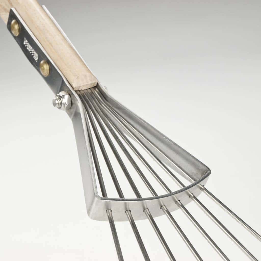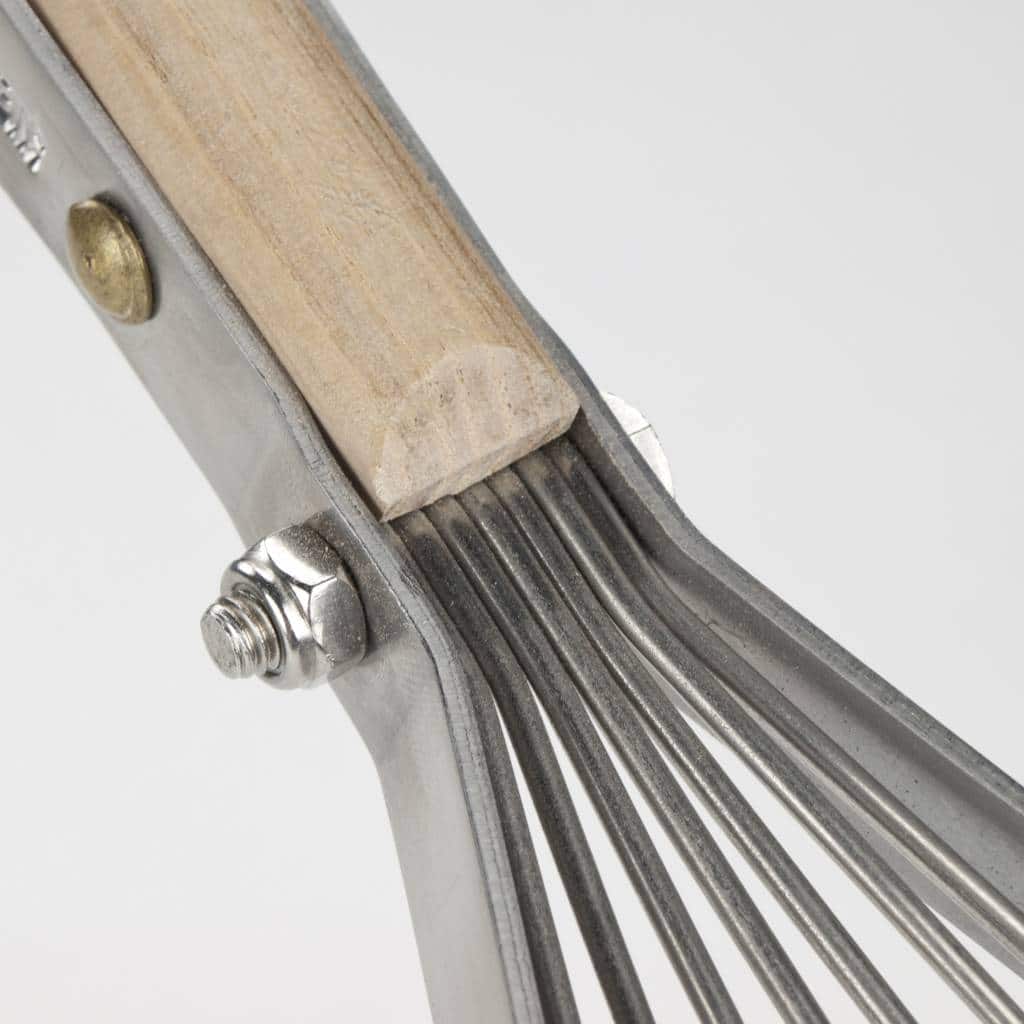 Deze bladhark beschikt over zeven flexibele, dunne tanden van een speciale legering van roestvast staal. Door het koude productieproces zijn de tanden flexibel én sterk. De bladhark is licht van gewicht, zodat het harken van bladeren, mos en andere resten bijzonder makkelijk gaat. Door het smalle formaat is deze bladhark zeer geschikt voor gebruik in borders en tuinen met veel beplanting.