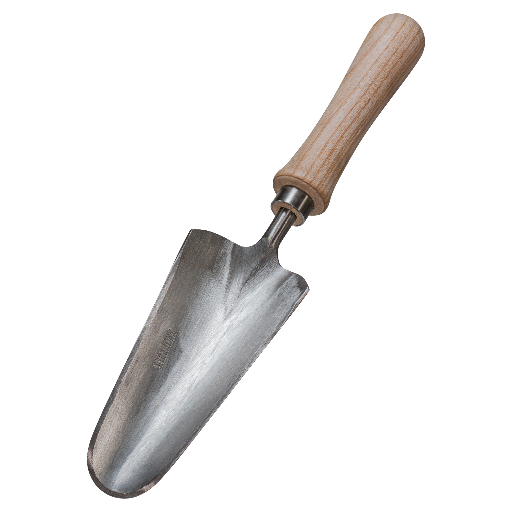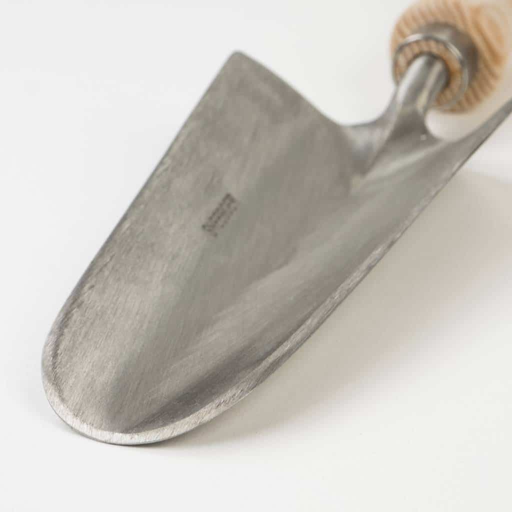 Het bloembedschepje heeft door zijn ronde vorm een comfortabele schepfunctie en beschermt potten tegen beschadigingen door het roestvaststalen blad. Door de vloeiende overgang van het blad naar het heft is het bloembedschepje zeer gemakkelijk in gebruik en comfortabel voor de polsen. Het roestvaststalen blad is 16cm lang en is verkrijgbaar met een essen- of kersenhouten heft van verschillende lengtes.