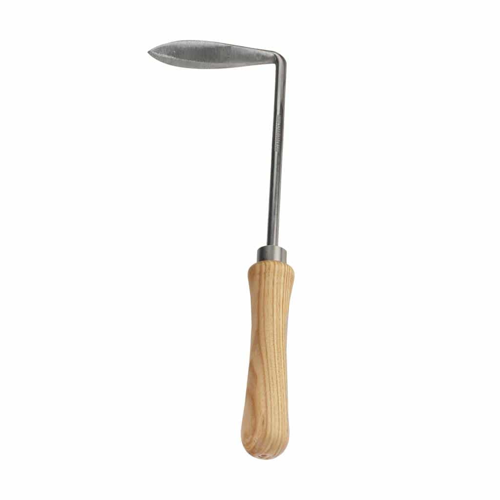 The design of the Cape Cod weeder originates from a classical tool from the United States of America. It was designed by a garden enthusiast from Cape Cod, a geographic cape and peninsula in the Easternmost part of the state of Massachusetts, in Northeast-America. This L-shaped tool is worldwide used like a hoe and can cut off any weeds from the root, but it can also be used to aerate and loosen up soil. To perform these tasks, the weeder is equipped with a sharpened flat blade and a pointed tip. The narrow head allows the user to work in very tight spaces around existing plants.