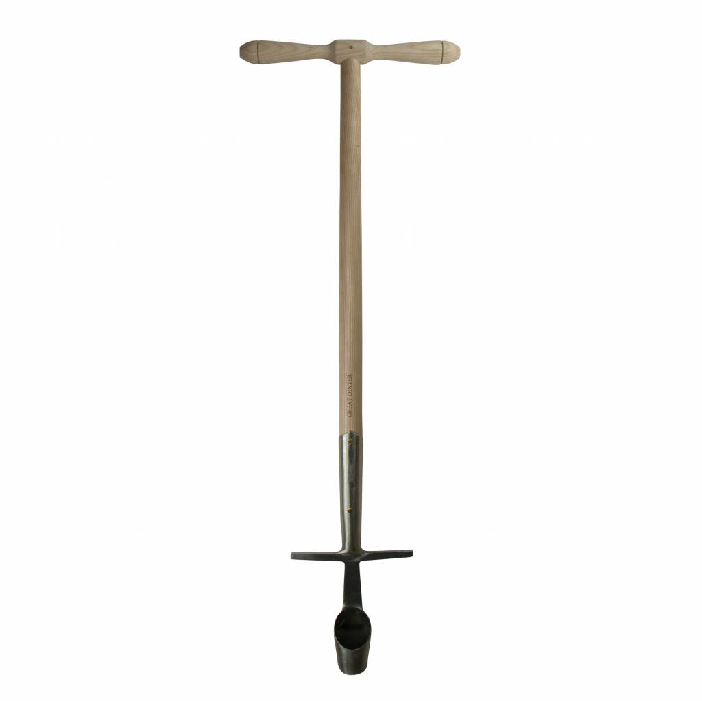 De Great Dixter bollenpriem is ideaal voor het poten van bollen. Het gereedschap bestaat uit een kegel van roestvast staal die gemakkelijk in de grond steekt, voorzien van steps aan weerzijden boven de kegel om kracht te zetten. De steel is van essenhout en biedt een comfortabele grip. De Great Dixter bollempriem is voorzien van een kruis waardoor er met de linker en rechtervoet kracht gezet kan worden. Met de kegel kunnen er plantgaten gemaakt worden van 9cm diep en door het ontwerp van dit gereedschap zullen de aangeplante bollen een natuurlijkere verdeling hebben.