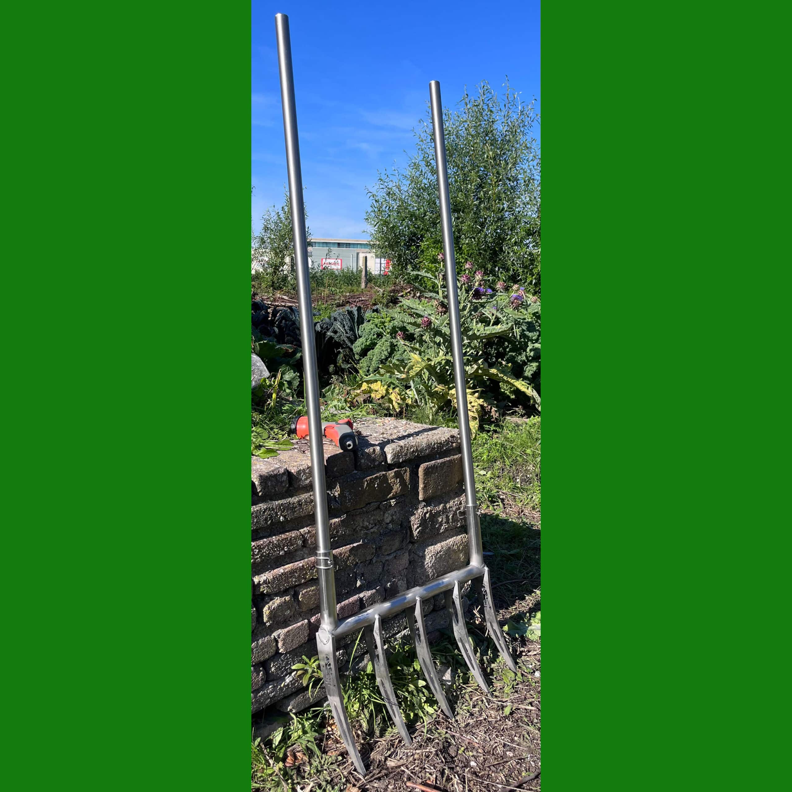 De Broadfork, ook wel bekend als een Grelinette, is een tuingereedschap dat wordt gebruik voor het omspitten, beluchten en bewerken van de bodem in de tuin. Het is ontworpen om de grond los te maken zonder de bodemlagen te verstoren of te keren, wat gunstig is voor het behoud van de bodemstructuur en het behoud van het bodemleven. Daarnaast kan de broadfork helpen in onkruidbestrijding en het gebruik maakt het makkelijker om compost en meststoffen in de bodem te vermengen.