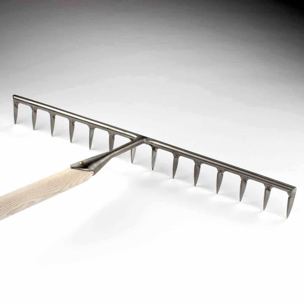 De grindhark is ideaal voor het creëren van een mooi, schoon en egaal grindpad. De 14 korte, kegelvormige tanden zijn scherp gesmeed, op de optimale hoek gezet zodat de grindhark het worteldoek onder de grindlaag niet beschadigt.