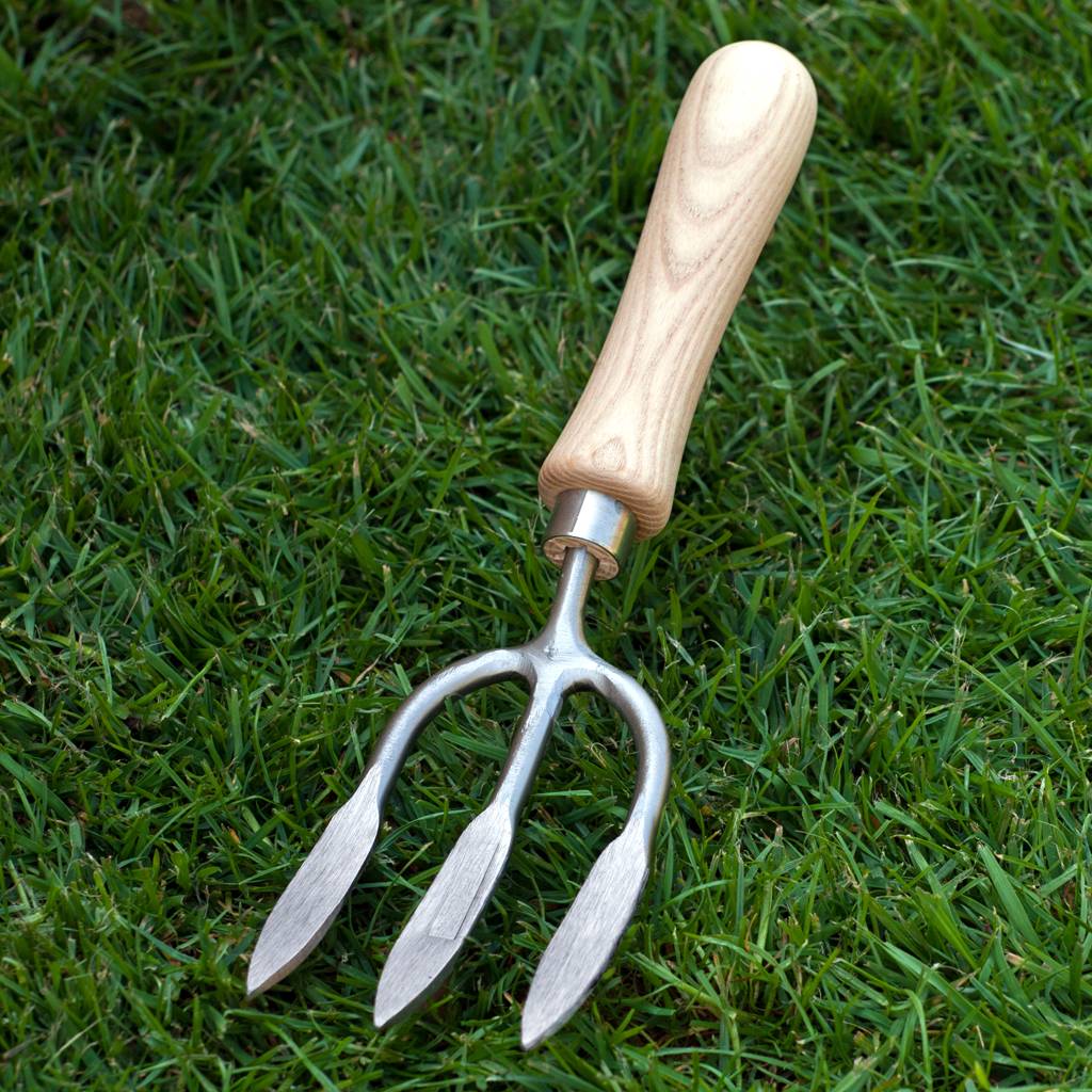 Het handrooivorkje is een handig gereedschap om gewassen te verplanten zonder daarbij de wortels te beschadigen. Het handrooivorkje is verkrijgbaar met handvatten van essen- of kersenhout.