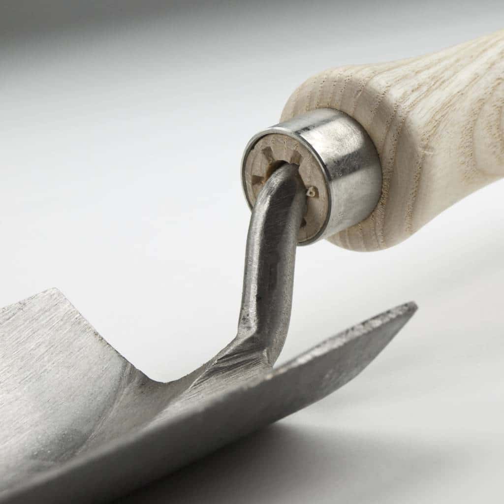 In tegenstelling tot het bloembedschepje loopt het blad van het Kappe verplantschopje niet taps toe waardoor u een grotere hoeveelheid aarde op kunt scheppen. Het Kappe verplantschopje is verkrijgbaar met een kersen- of een essenhouten handvat. Er is tevens een Kappe verplantschopje verkrijgbaar met een verlengde steel van 60cm die zeer geschikt is voor de verhoogde tuin.