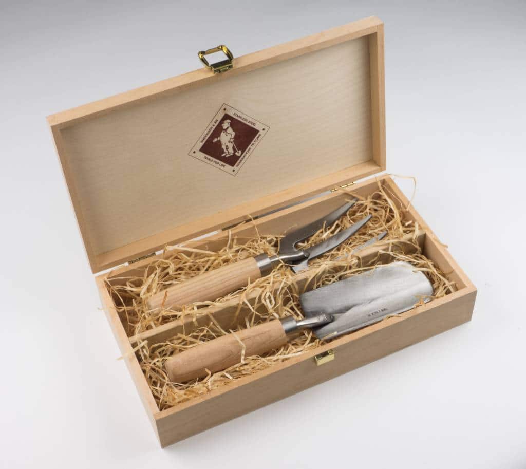 De kinder geschenkset is een mooi cadeau voor kinderen vanaf 6 jaar waarmee ze onder begeleiding van ouderen mee kunnen helpen. Het kleine vorkje en schepje zijn licht in gewicht en afgerond met een klein kersenhouten heft waardoor ze mee kunnen helpen in de tuin. Wij noemen deze set ook wel het cirkel cadeau omdat deze gebruikt kan worden door kinderen maar ook op veel latere leeftijd is dit gereedschap aan te raden door het lichte gewicht.