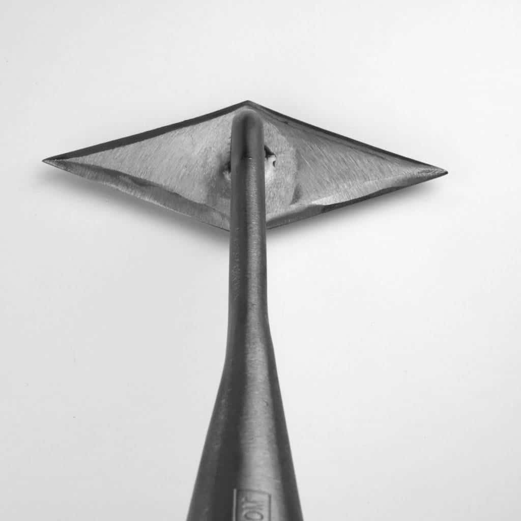 Met deze schoffel met ruitvormig model, kunt u gemakkelijk onkruid bestrijden zonder dat u daarvoor hoeft te bukken. Door de unieke vorm van het kleine blad kunt u met extreme precisie in uw tuin werken. Deze schoffel is aan vier kanten met de hand gesmeed en daarna scherp geslepen, waardoor u snel en behendig het onkruid tussen de planten kunt wegsnijden.