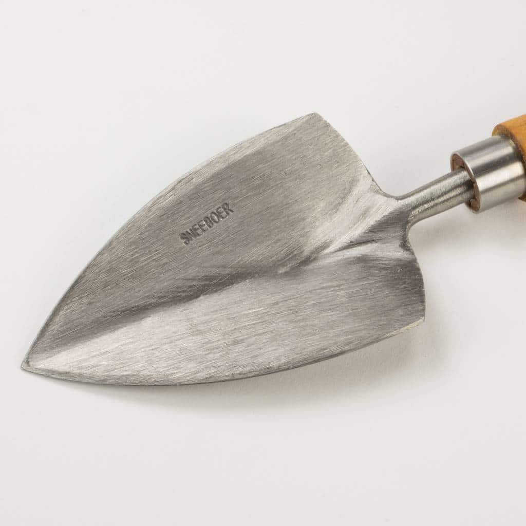 Deze smallere variant van het verplantschepje neemt minder grond weg en is daarom lichter in gebruik. Het verplantschopje is zo ontworpen dat de polsen geen last ondervinden tijdens het werken in de tuin en is verkrijgbaar in meerdere vormen en maten, waarbij u de keuze heeft tussen een kersen- of een essenhouten handvat.