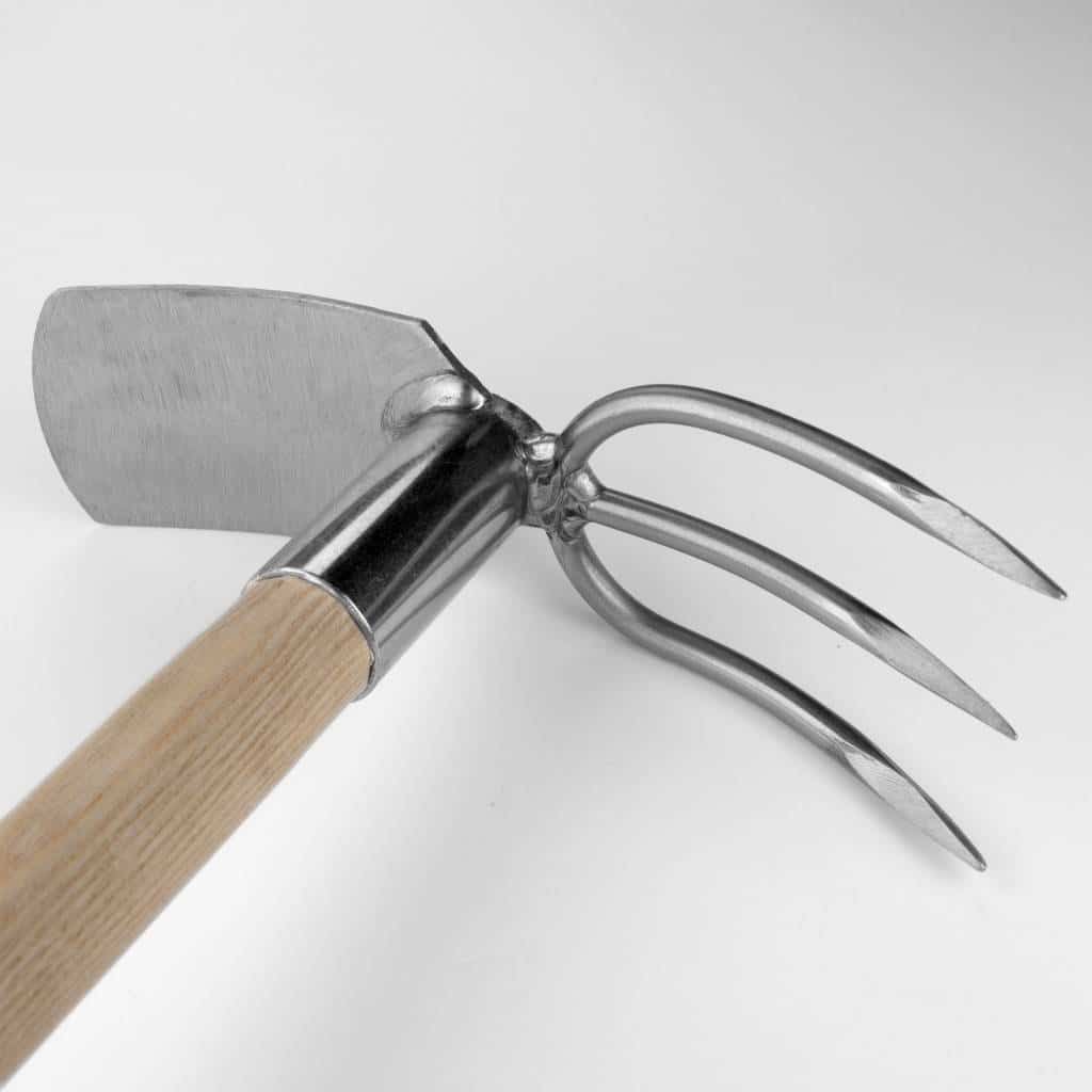 De veldhak & vork combineert het sterke blad van de veldhak met een scherp gesmede vork. Zo kan zowel de grond gecultiveerd of open gebroken worden en het onkruid verwijderd worden, zonder van gereedschap te wisselen. Dit gereedschap is geschikt voor zelfs de meest compacte grondsoorten. Doordat beide delen relatief smal zijn is de veldhak & vork ook geschikt om tussen de planten te werken.