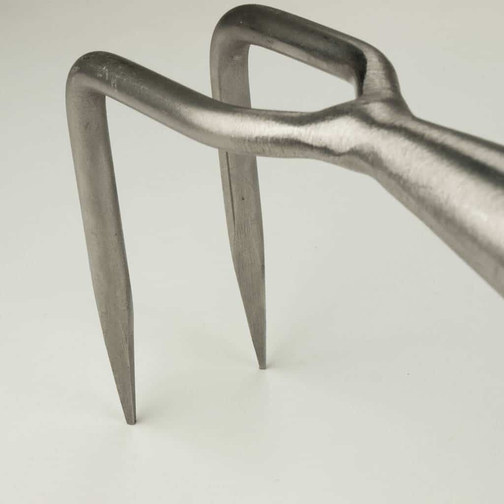 Deze variant van de wiedvork is ideaal om op een hoek onkruid te wieden en de grond te beluchten. Deze wiedvork wordt geleverd met een essenhouten steel van 155cm en de tanden zijn in een hoek van 90 graden gebogen waardoor er comfortabel staand gewerkt kan worden. De twee tanden die op een lijn met elkaar staan maken deze wiedvork nauwkeuriger dan een cultivator en zeer geschikt om in druk beplante borders te gebruiken.